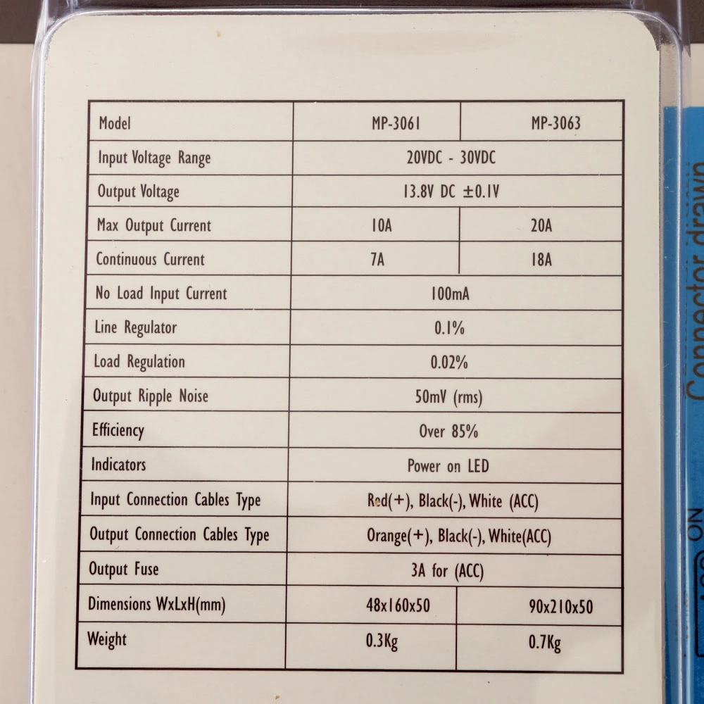 - Output ripple noice: 50mV (rms)