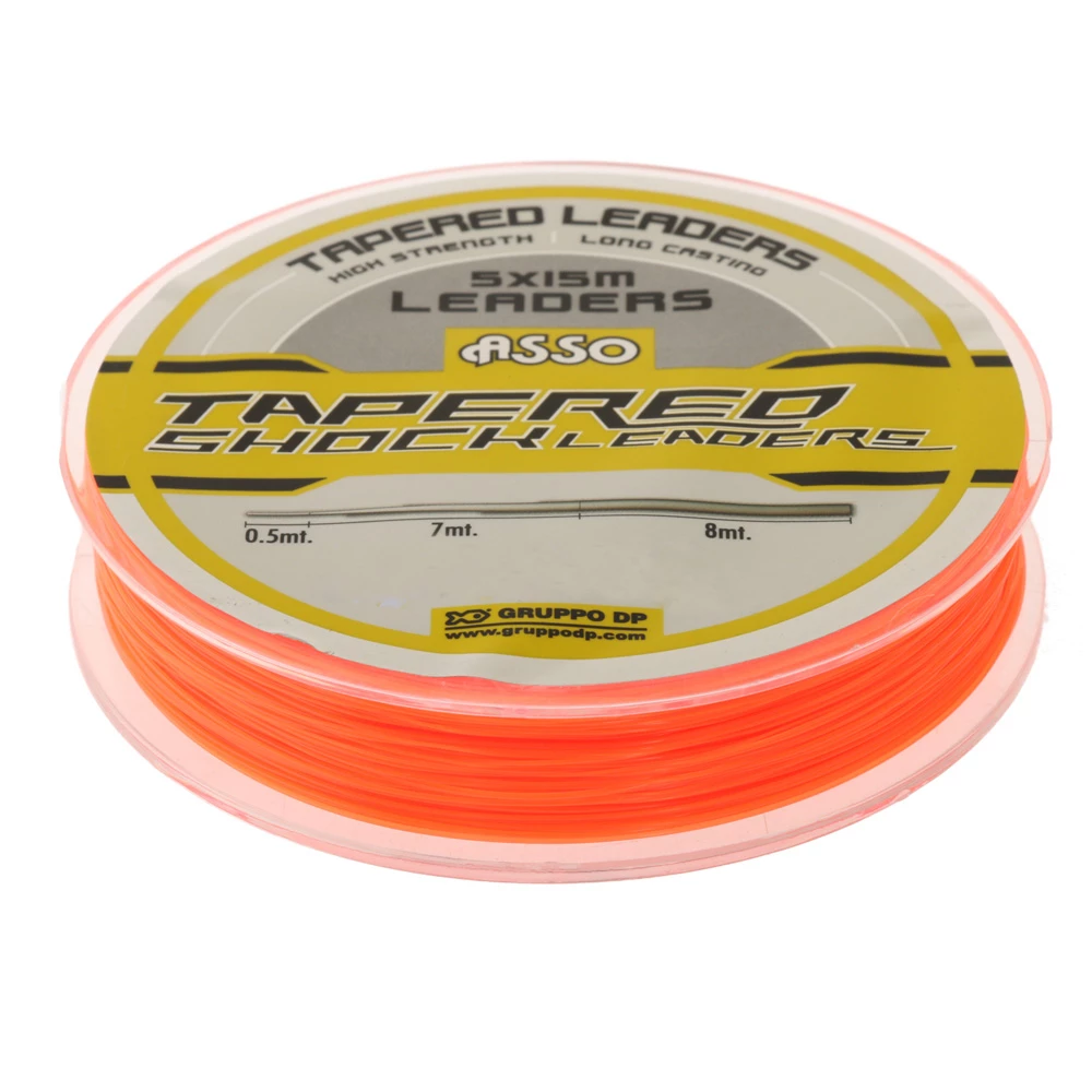 The Asso Tapered Shockleader increases in line diameter and breaking strain along the length of the leader. Designed to achieve longer casts by flowing smoothly through the rod guides, while also absorbing the stress on the line while casting. Ideal for surfcasting and land based fishing. Each pack comes with five 15m shockleaders.