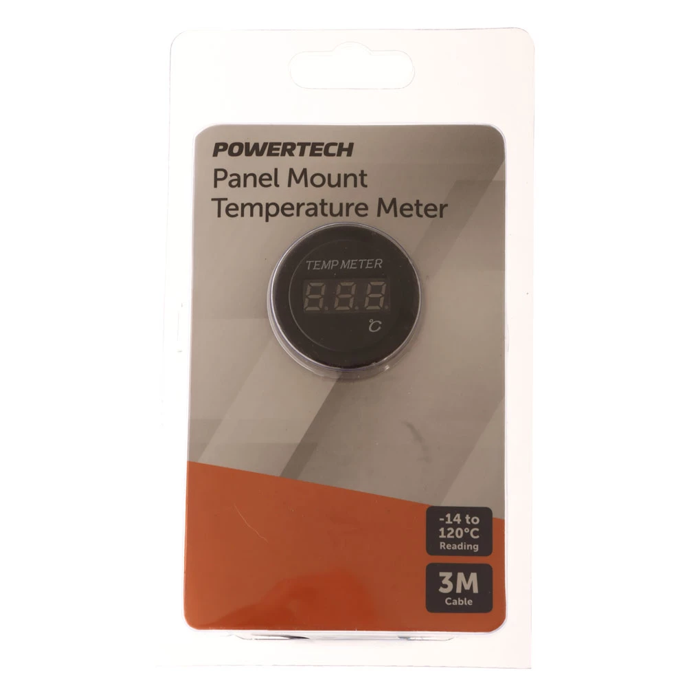 A quick and simple way to monitor temperature in a vehicle, this panel mount Blue LED Display Thermometer gauge displays the temperature being picked up by the probe that’s mounted to a handy 3m cable so it can be run behind a dash into the engine bay. Simply wire up to a DC power source between 12-24VDC, and the blue LED display will show current temperature.