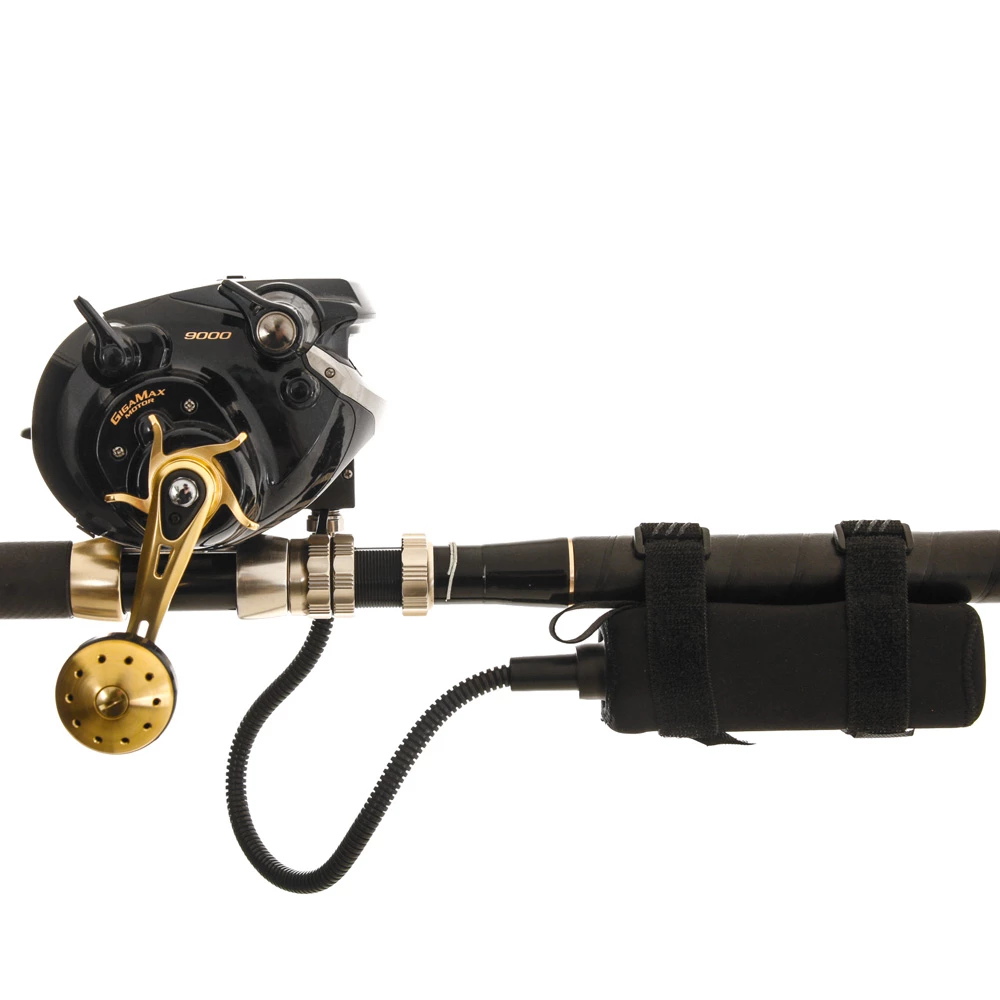This Clip-On Portable Electric Reel Battery allows you use your Power-Assist electric reels in the most convenient way possible. No need to carry those bulky SLA batteries anymore! This compact and lightweight battery pack is designed to be attached to your rod. It comes complete with hook and loop straps, neoprene sleeve, and a charging unit. It’s power and convenience rolled into one. A must-have for all Power Assist Electric Reel owners.