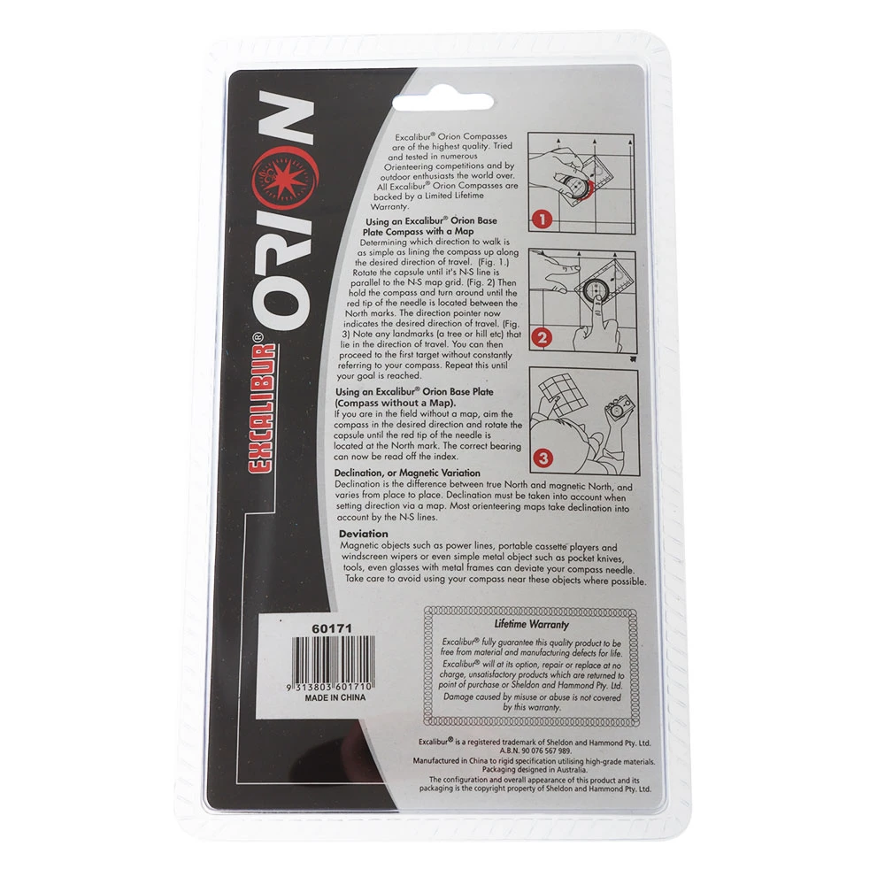 Technology, however powerful, is no match for basic navigational ability. Beginning orienteers should learn basic compass skills and work on mastering map reading. The Excalibur Orienteering Compass is suitable for various outdoor activities such as hiking, climbing, fishing and camping. This basic navigational tool is small enough to fit in your backpack or pocket. Convenient to carry and practical.