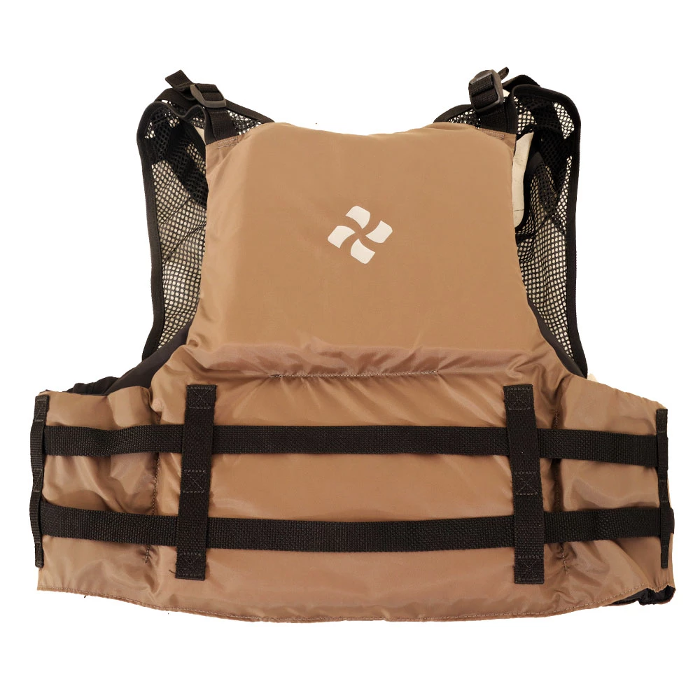 Extrasport’s Air Comfort System provides ultimate fit and comfort. Ariaprene (perforated neoprene) straps, wrapped in mesh, lightly pad the shoulder strap area without restricting air flow through the straps. Inside the PFD, channelled pads of EVA bump foam minimise skin contact to promote air circulation. In the EVA bump foam pads, the spacing between bumps promote air flow, dissipate moisture, minimise surface contact with skin, and is covered with comfort mesh. The air channels in between pads create natural paths for air circulation. The chimney shaped mesh vent drafts air through the back panel. For the flotation, layers of skived (cut on angle) PE foam provide maximum freedom of movement and prevent chaffing. The thin layers of shaped foam contour to the body for great fit and maximum mobility. The contouring is visible in the shape of the PFD.