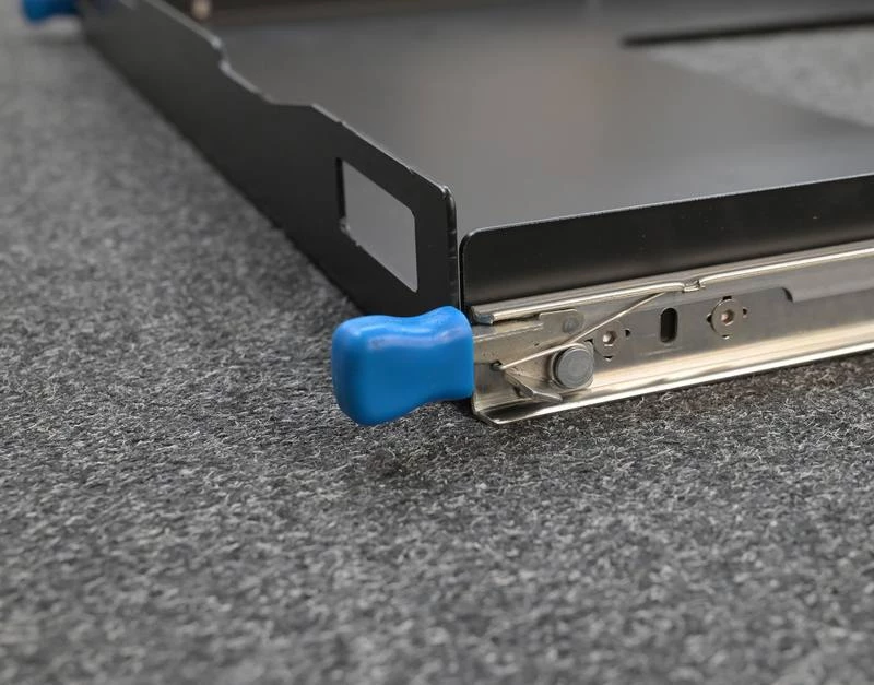 A great option for the back of the ute or camper. Slides out with ease by pushing down on both blue levers. Due to the weight of the cooler it does not slide around on the drawer. The slide will slide and click back in place to keep your cooler secure when in transit.