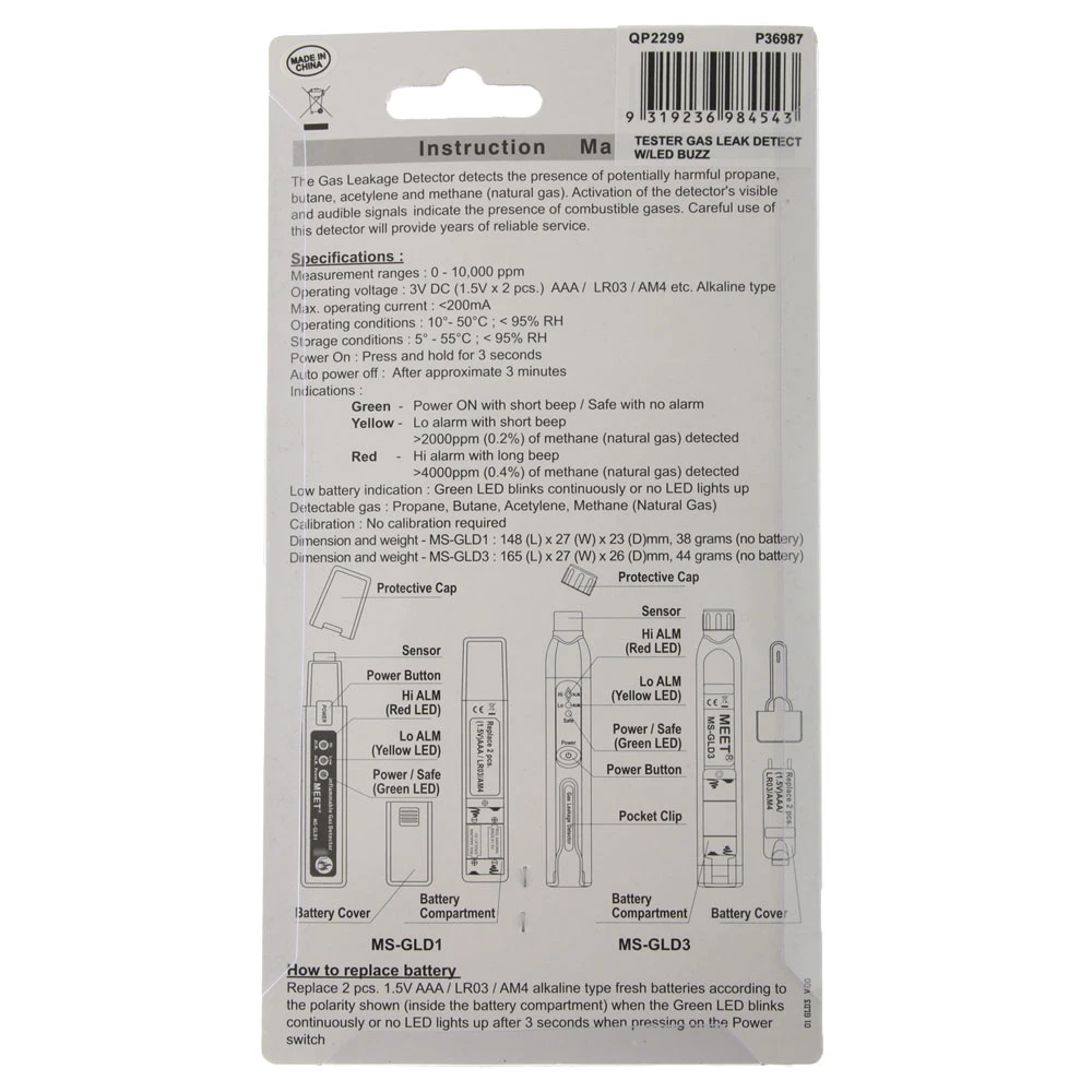 Gas Leakage Detector Specifications: