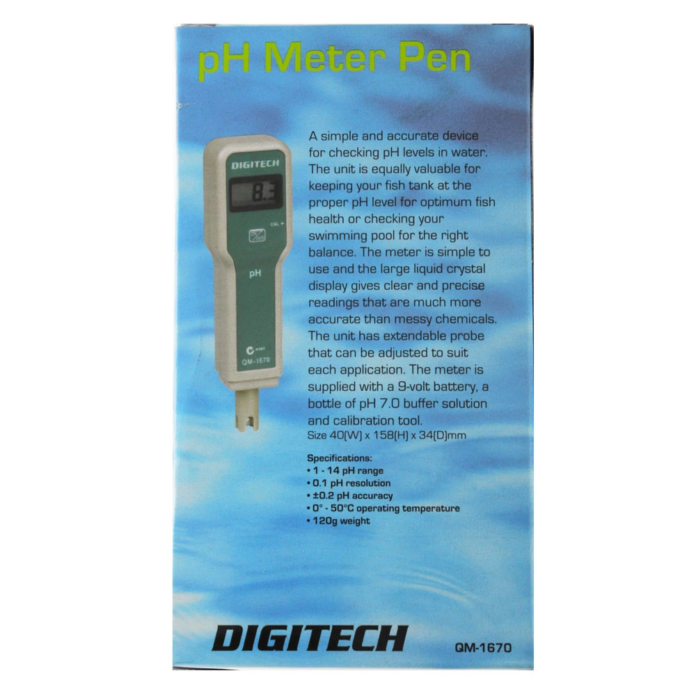 This Hand Held pH Meter is equally valuable for keeping your fish tank at the proper pH level for optimum fish health or checking your swimming pool for the right balance. The meter is simple to use and the large liquid crystal display gives clear and precise readings that are much more accurate than messy chemicals. The unit has an extendable probe that can be adjusted to suit each application. The meter is supplied with a 9 volt battery, a bottle of pH 7.0 buffer solution and calibration tool.