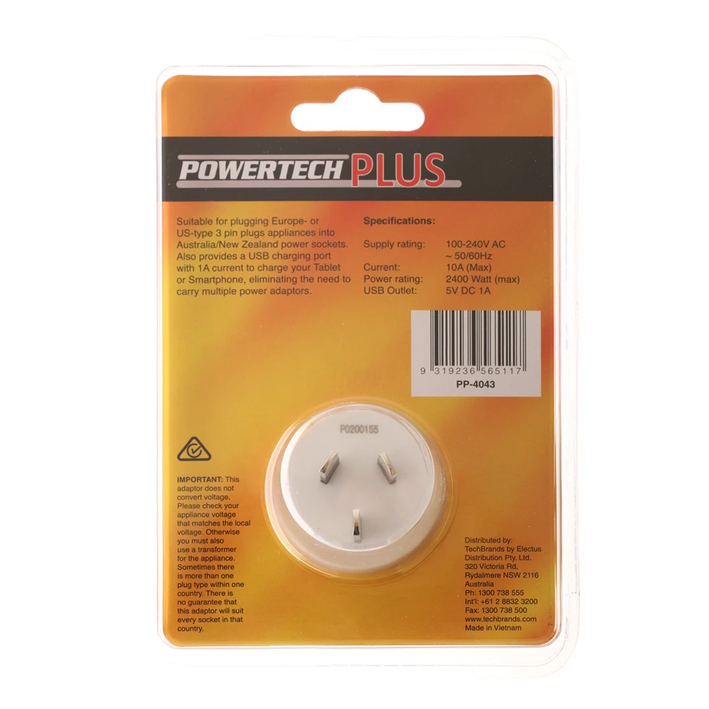 This compact Inbound Mains Travel Adaptor lets you plug Europe, Bali, USA and Japan appliances into Australia and New Zealand power sockets. It also sports a USB port for charging your tablet or smartphone. Take this handy Inbound Travel Adaptor on your trips so you’re always ready for anything.