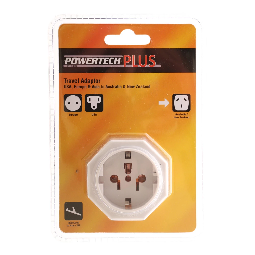 This compact Inbound Travel Adaptor lets you plug Europe, USA and Asia appliances (two or three pun plugs) into Australia and New Zealand power sockets. It’s ideal for use with universal voltage devices which operate on voltages up to 240V AC. Take this handy Inbound Travel Adaptor on your trips so you’re always ready for anything.
