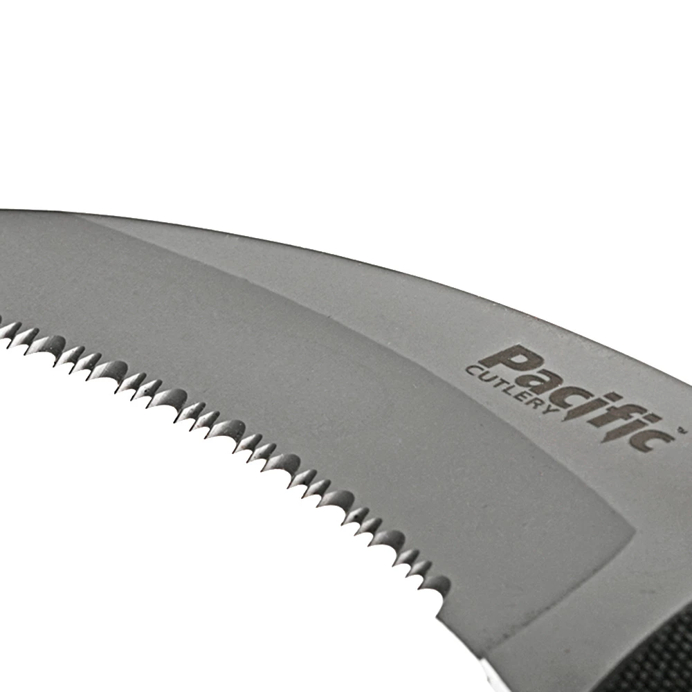 Designed with rescue tasks in mind, the Pacific Cutlery Stainless Rescue Pocket Knife features a curved serrated blade, with a
