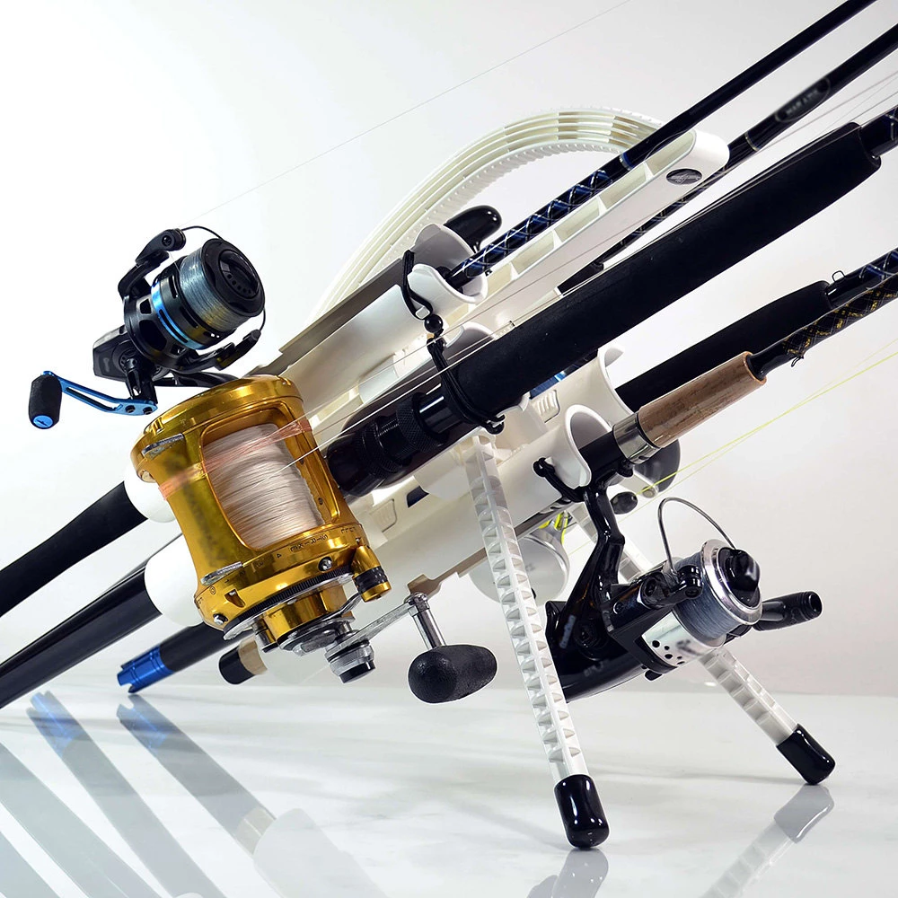 keeps rods at an ideal angle so you can simply place it on the ground without damaging your reels, tangling lines,