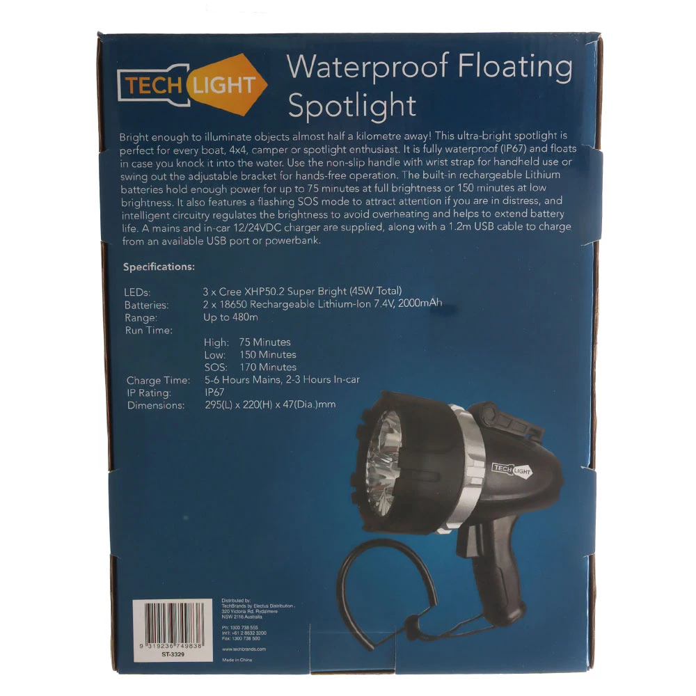 Techlight Rechargeable Waterproof LED Spotlight Features: