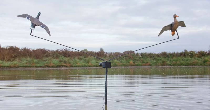 Terminator Twin Tornado 12v Decoy Machine With Battery, Remote and Two Flying Mallard Decoys