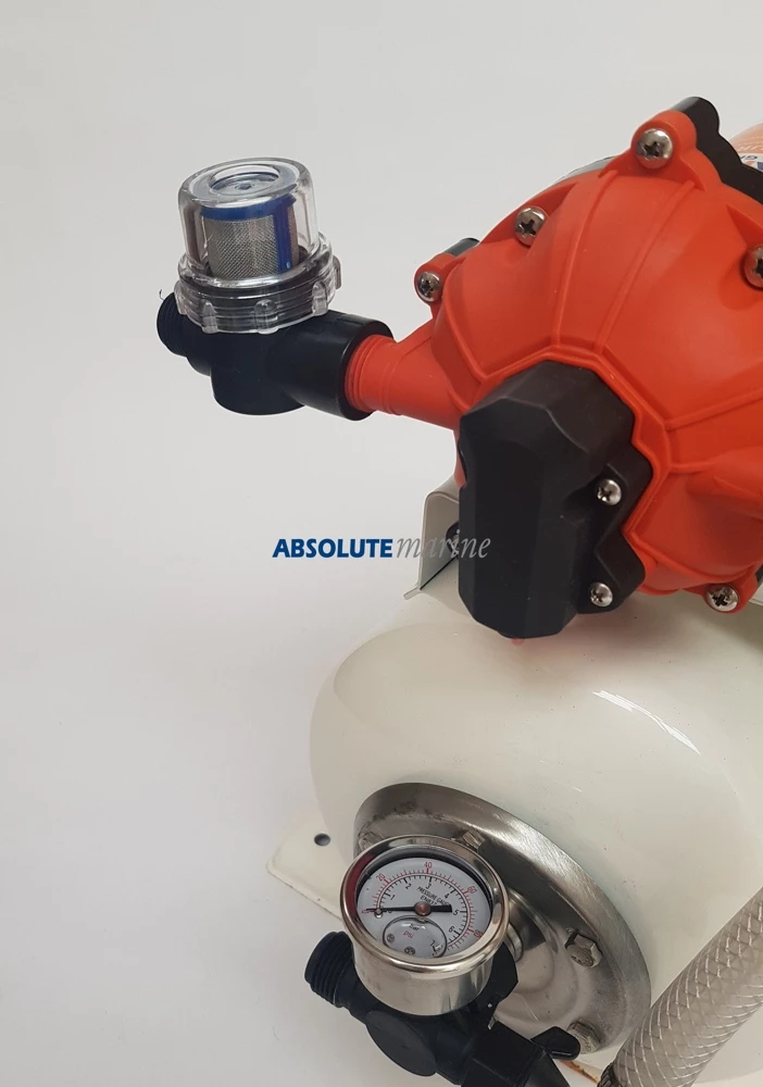 This Water Pressure Pump and Accumulator Kit is an integrated pump and accumlator tank system designed to provide smooth and reliable pressured water supply. The compact design makes it easy to install. It can be mounted vertically or horizontally and is suitable for use in RVs, campervans and boats. The accumulator tank has a total volume of 8 litres. A quality product built for durability and value for money.