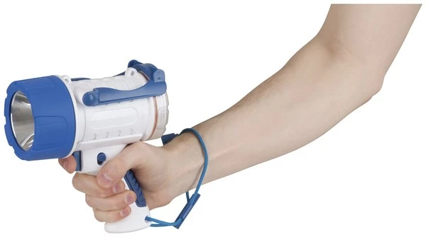 Designed for taking on the boat, fishing trips, etc. This Waterproof Floating Spotlight will float if it’s knocked into the water. Features a lock switch and swing out bracket for when you need hands-free operation. Includes red-LED strobe function too! The hand strap also includes a whistle for getting attention. Supplied with mains and cigarette lighter charger.