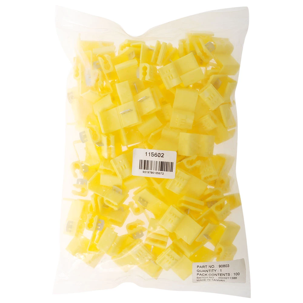 These Wire Tap Connectors provide simple power connection splice. No cutting or stripping of wire or insulation required. Plated contact, moulded housing with snap close tab. Sold in packs of 100.